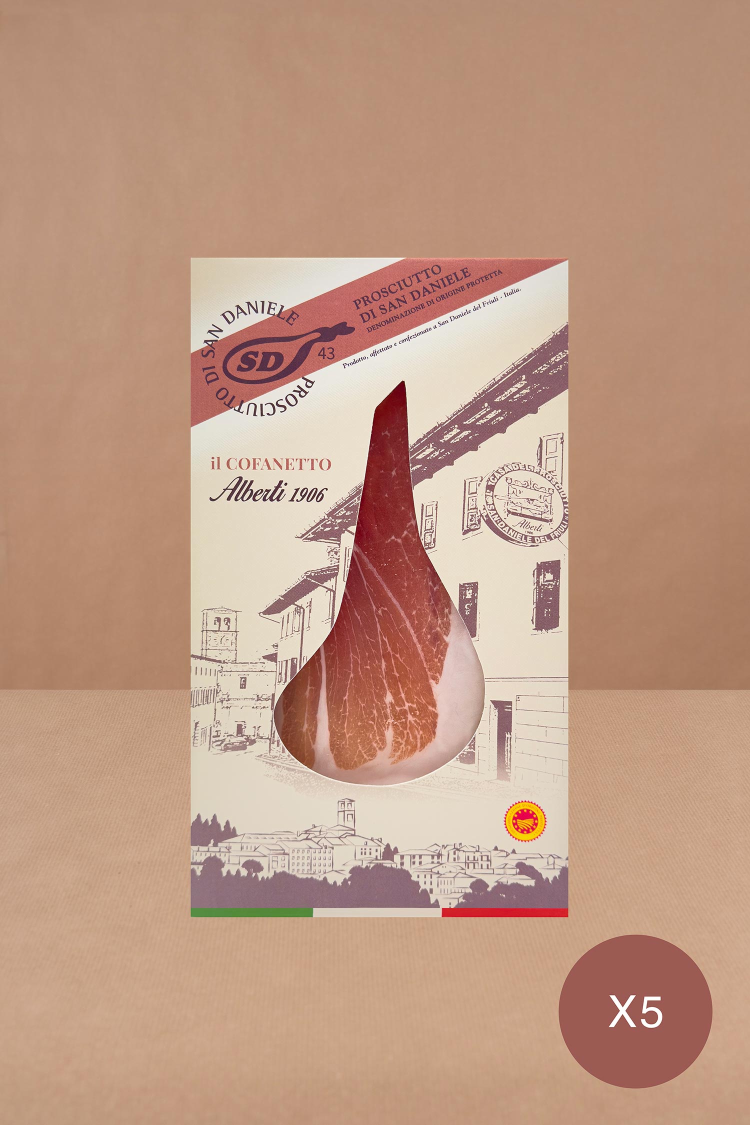 „Il Cofanetto“ Alberti 1906 geschnittener San-Daniele-Schinken