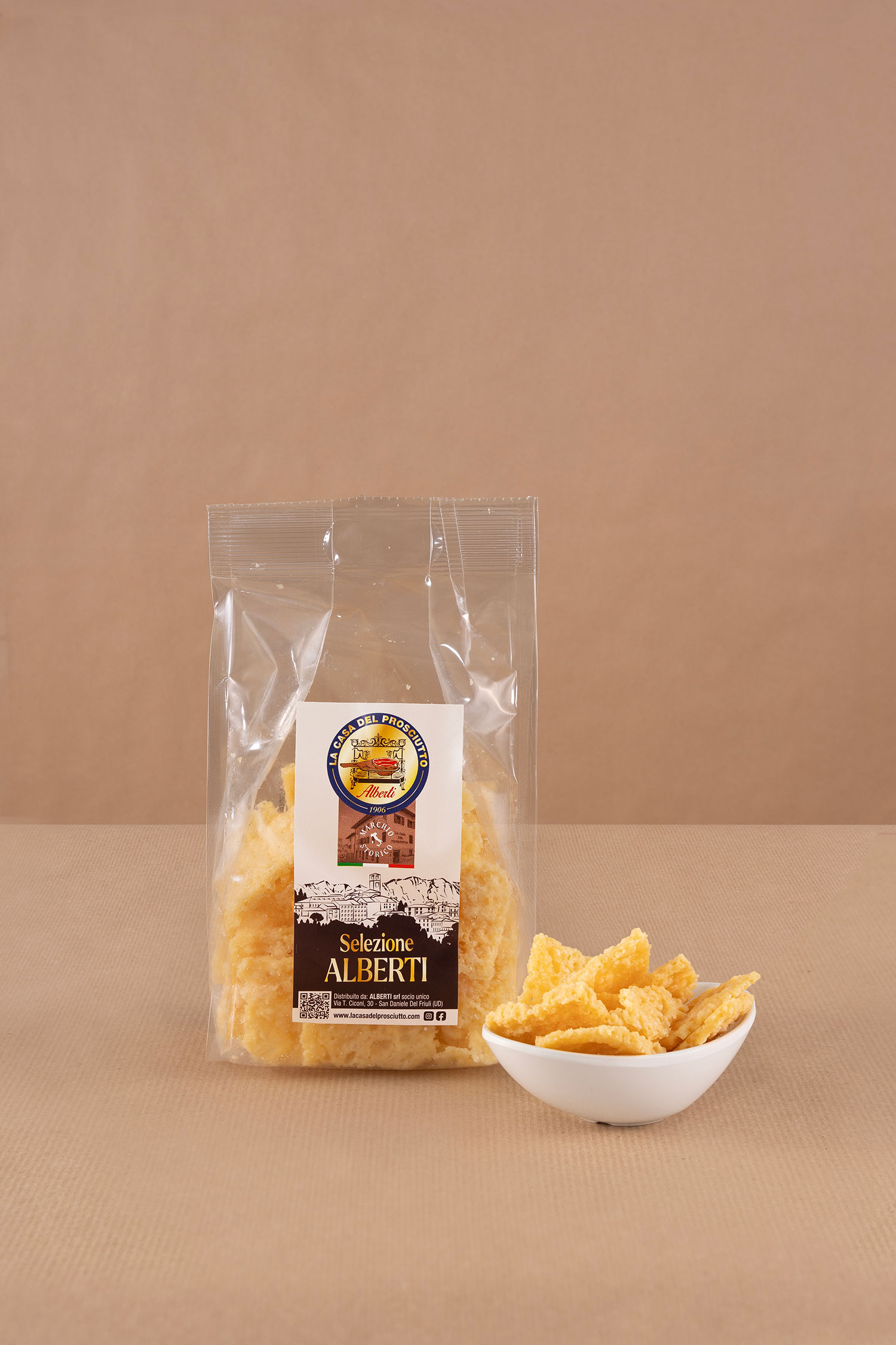 Direttamente dalla tradizione friulana, ti proponiamo il Frico nella sua versione friabile, uno sfiziosissimo abbinamento al nostro prosciutto.
